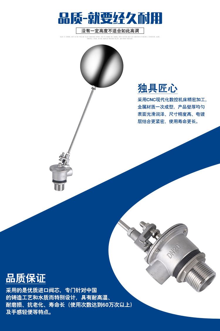 上海吉邁閥門制造有限公司主要生產(chǎn)≦不銹鋼可調(diào)式浮球閥≧也是國內(nèi)球閥生產(chǎn)商之一。公司創(chuàng)建以來,始終致力于閥門的科技管理和不斷創(chuàng)新,使企業(yè)走上了良性循環(huán)的規(guī)模化經(jīng)營之路,擁有了一支專業(yè)的閥門設(shè)計和技術(shù)研發(fā)隊伍,形成了一套完整的生產(chǎn)管理、質(zhì)量管理、營銷管理和服務(wù)管理體系。